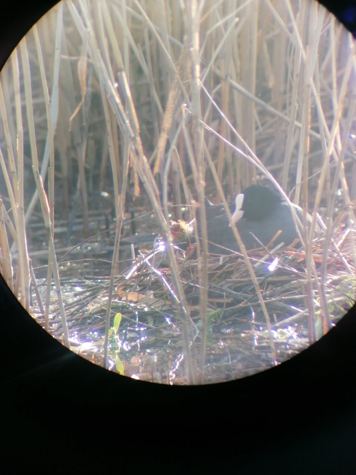 C’est un oiseau noir avec un front blanc, qui nage dans les étangs, les rivières et les lacs. Il plonge pour manger des plantes aquatiques, des insectes ou des petits poissons. On l'appelle souvent à tort "poule d'eau", car c'est la Gallinule poule d'eau qui porte ce nom. Sur la photo, la foulque est au nid sur ses poussins tout rouge !