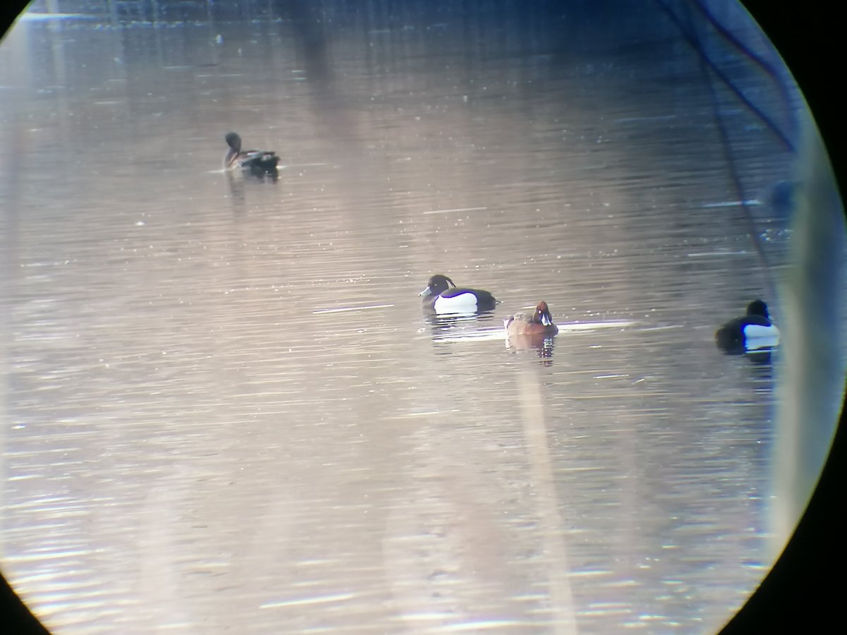 C’est un canard commun noir et blanc, qui vit dans les lacs, les étangs et les rivières. Il plonge pour manger des plantes aquatiques, des insectes ou des mollusques. Le mâle a les flancs très blancs et une petite hupette sur la tête. Sur la photo, on voit une autre canard brun qui ressemble : c'est un Fuligule nyroca, plus rare sur nos étangs.