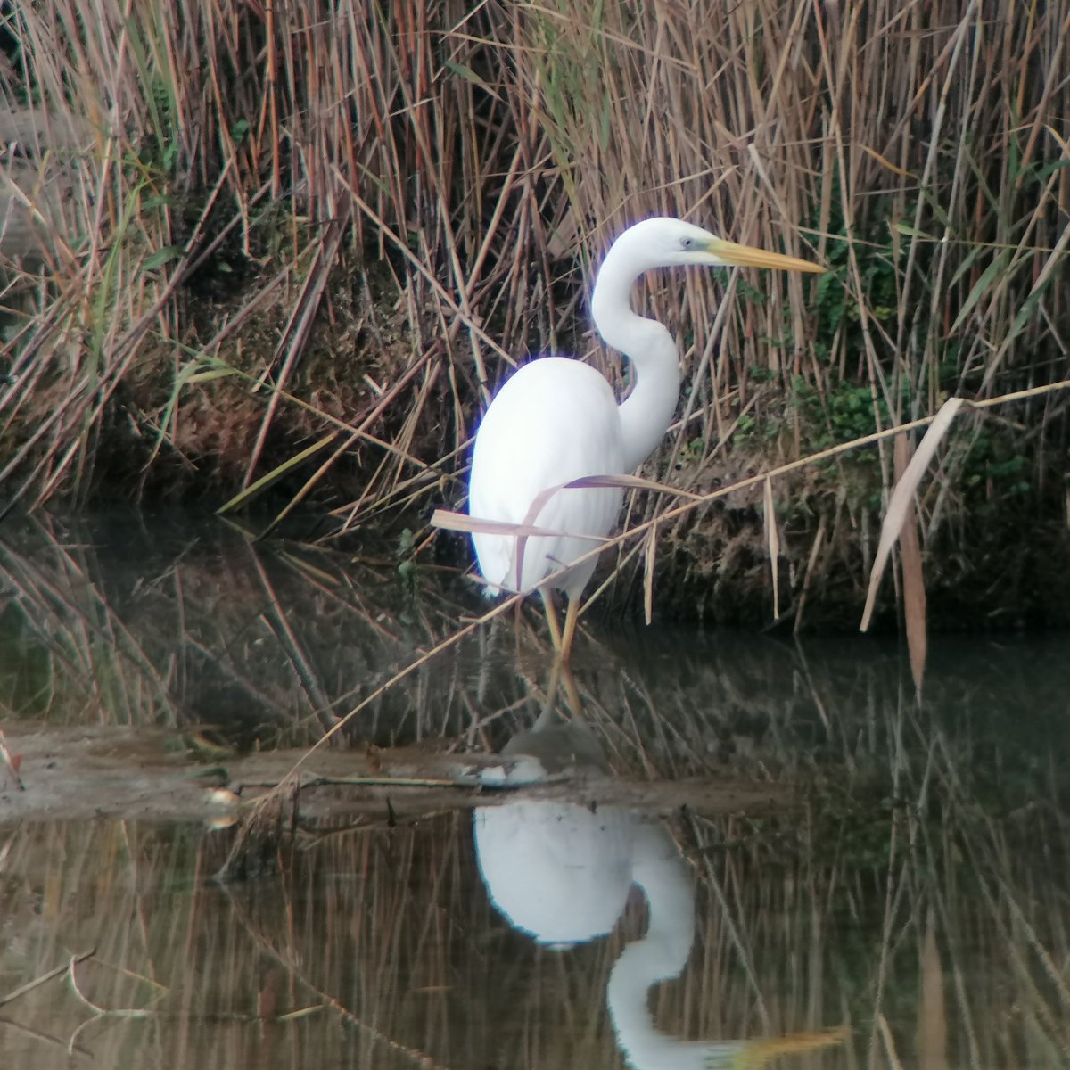 C’est un grand héron blanc, qui marche lentement dans les marais, les rivières ou les étangs. Il attrape des poissons, des grenouilles ou des insectes avec son long bec. Il y a quelques années, il était très rare d'en voir chez nous l'hiver. Aujourd'hui, avec le réchauffement, on peut en voir chaque hiver sur nos étangs.