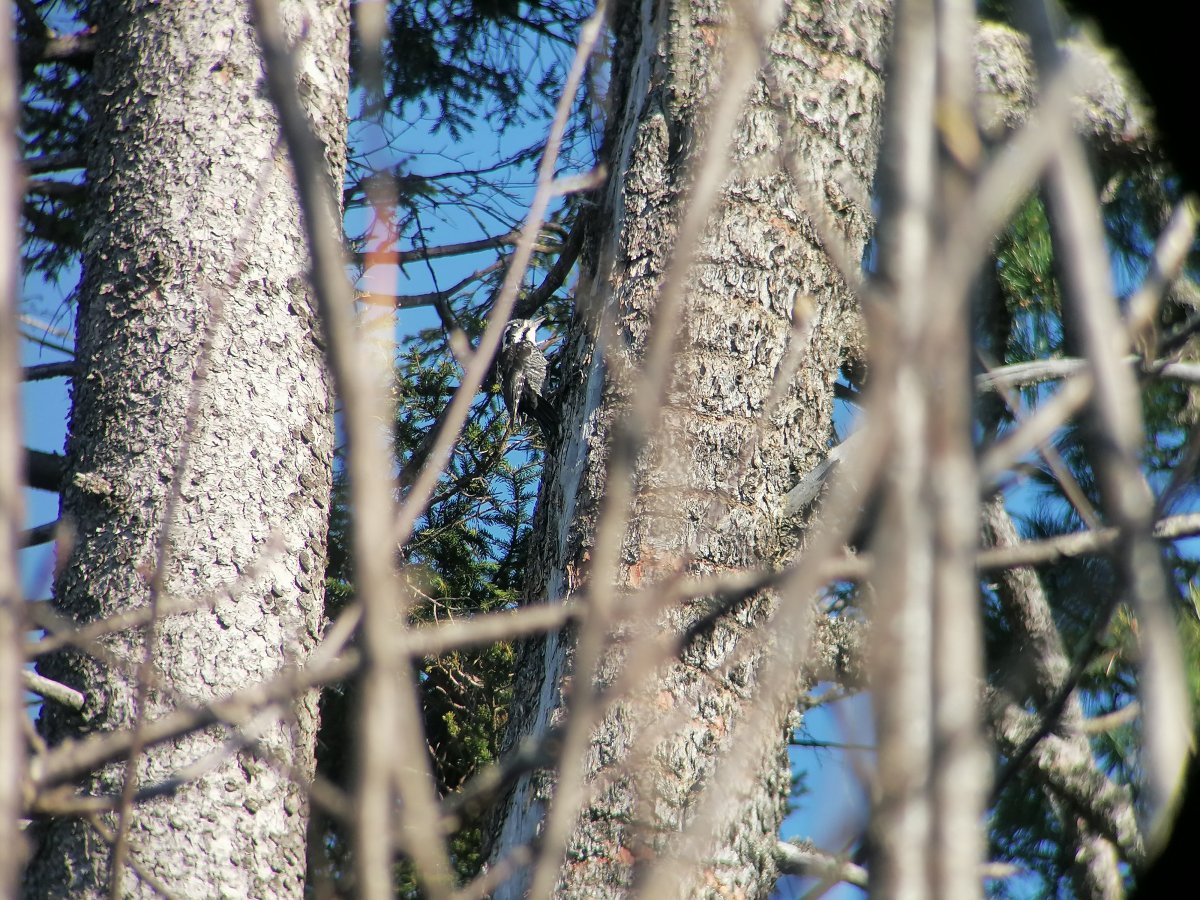 C’est un pic noir et blanc, qui vit dans les forêts de montagne. Il tape sur les arbres morts pour trouver des larves. Il ressemble au Pic épeiche mais le mâle a du jaune sur la tête et il possède 3 doigts et non pas 4. J'ai eu la chance de l'observer quelques minutes, dans une forêt près du Gantrisch.